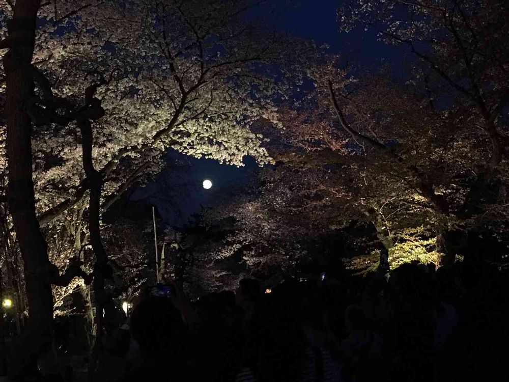 京都二条城の桜🌸と ブルームーン。昨夜息子が写真を送ってくれました。凄ーい人。人。人。だったとか(笑)