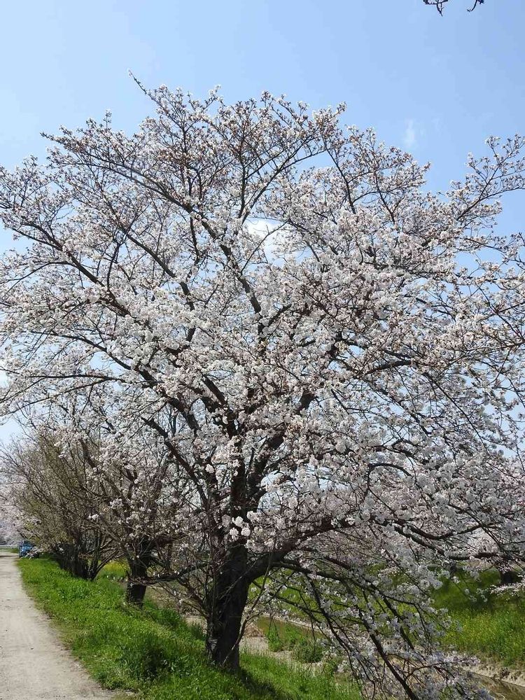 奈良市柏木町・杏町を流れる佐保川堤で青空に映えて咲き誇る綺麗な🌸サクラ🌸