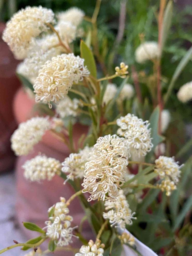 アップでよ〜く見るとグレビレアの花ですよ🌼