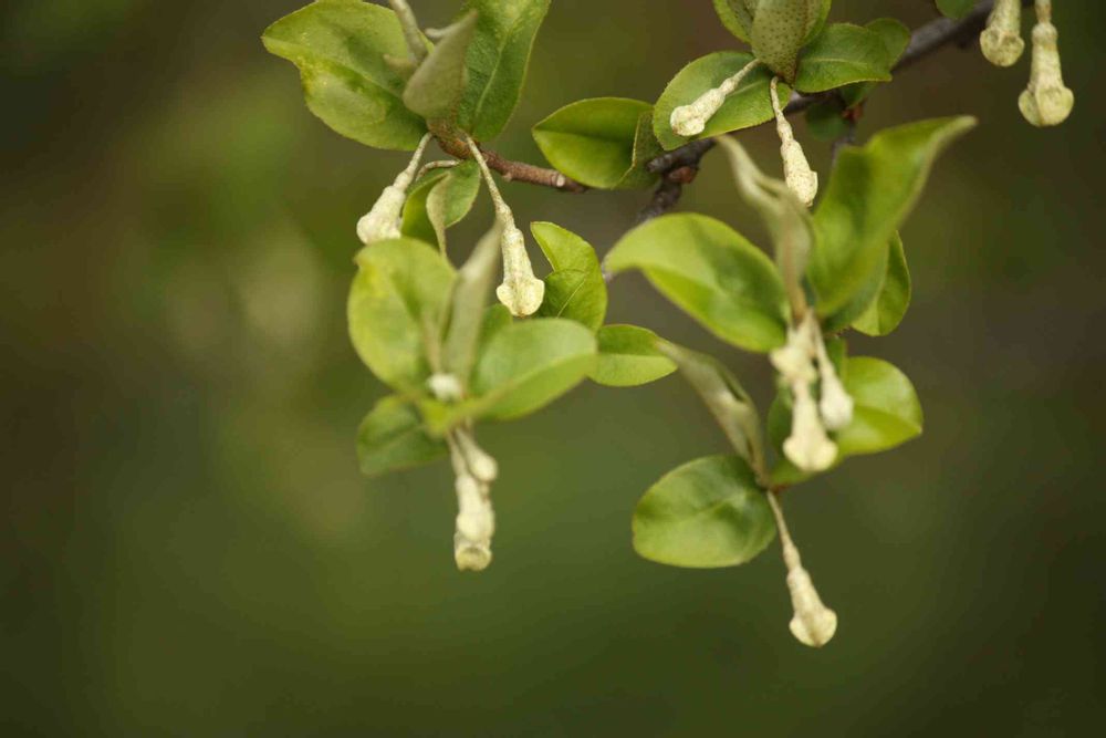 お花の形はナワシログミと同じですが、ナワシログミは茶色の斑点があり、アキグミは黄緑色の斑点があります。