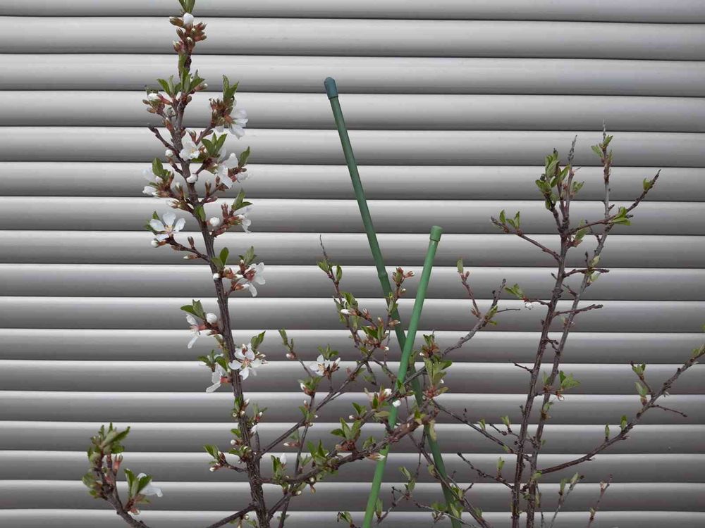 ゆすらうめ 挿し木からの開花2回目😃見えにくいですが😁