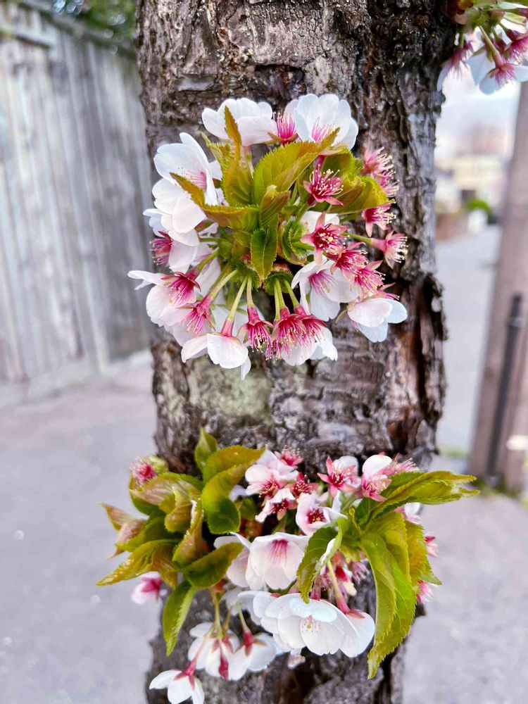 桜の木が、胸にコサージュ付けてオシャレしていた🌸😌