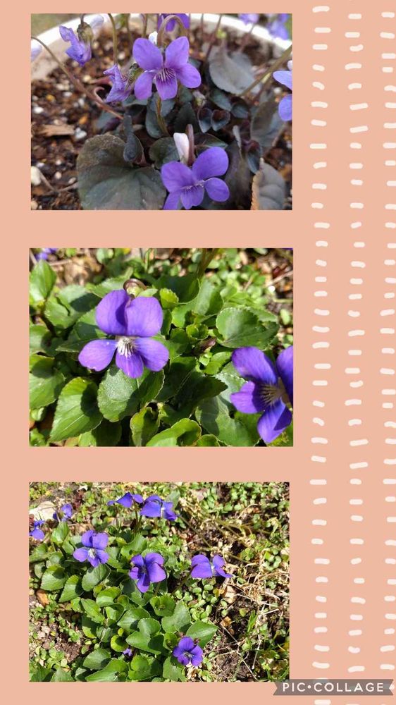 いつも行くドラッグストアーの道路の街路樹を植える一角に、半分スミレという所があるの。毎年楽しみよ。💜💜💜
