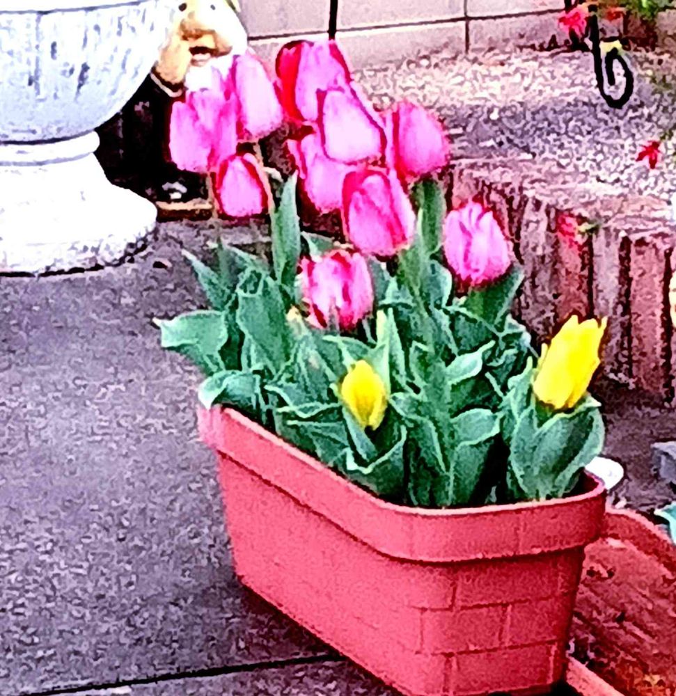出勤途中に、通り道のお宅のチューリップ🌷です。