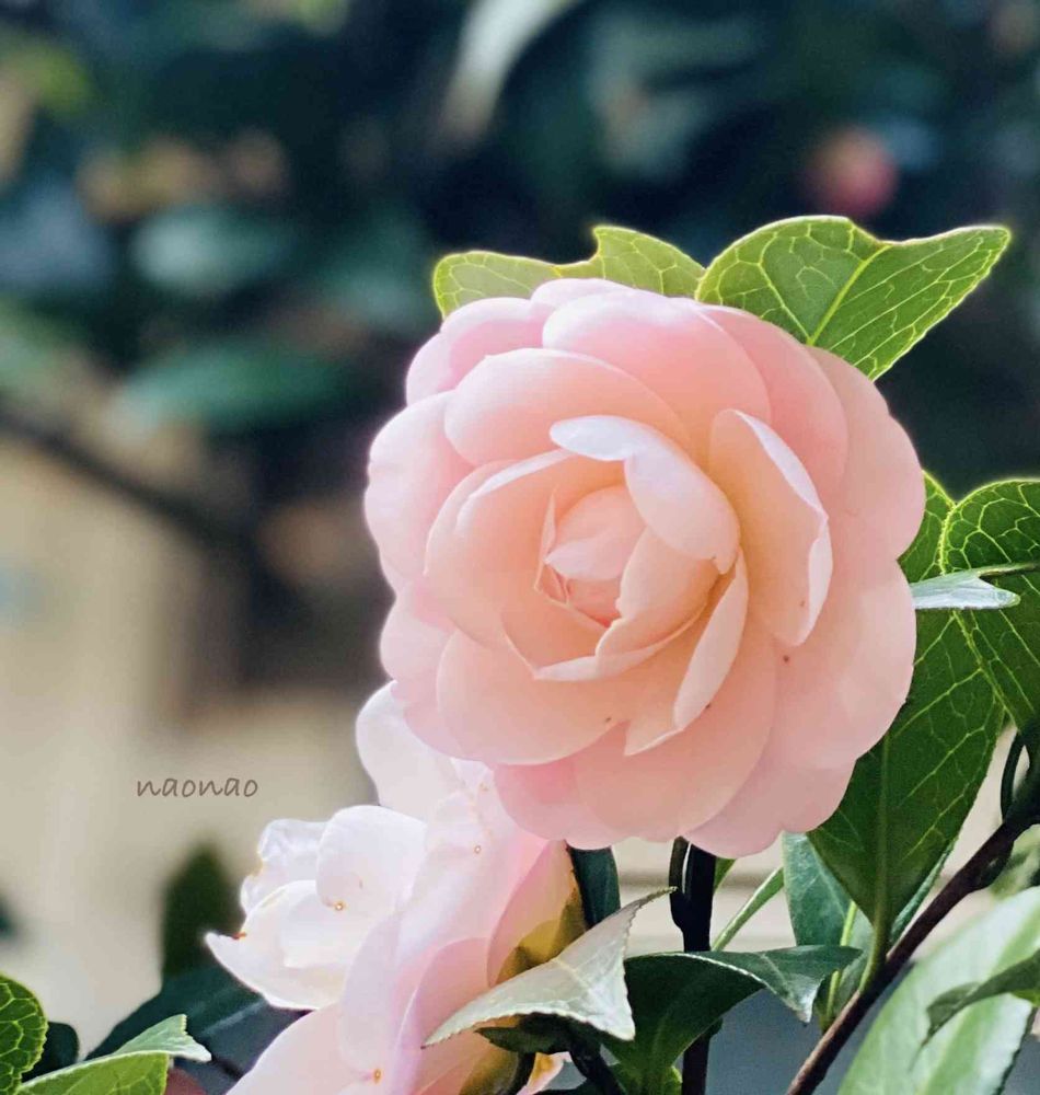 中庭の八重の椿が花盛りです😍