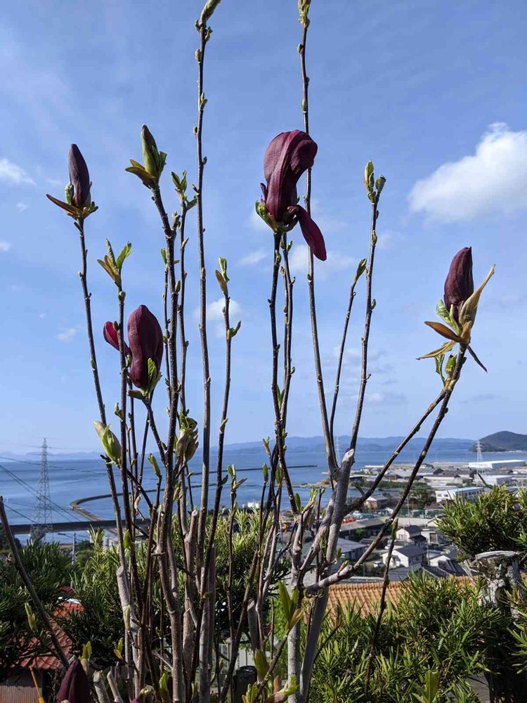 晴れました。紫の木蓮堂々と、開花😱👍📸