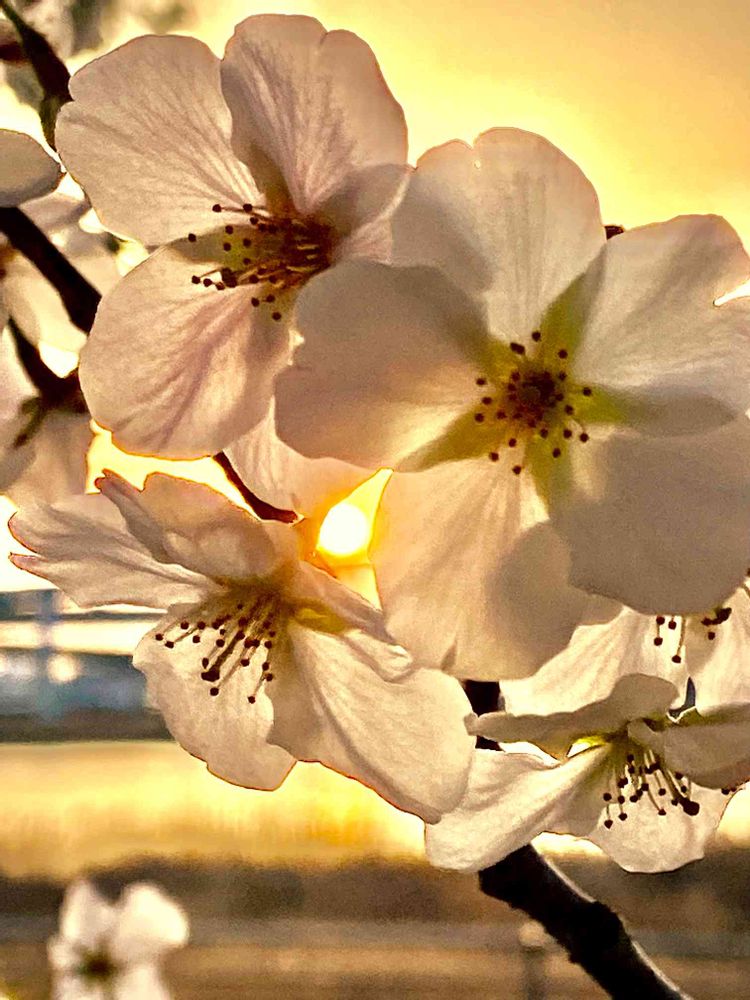 を照らしながら昇っていく所を花びらを透かしたようすを撮ってみました🌸☀️