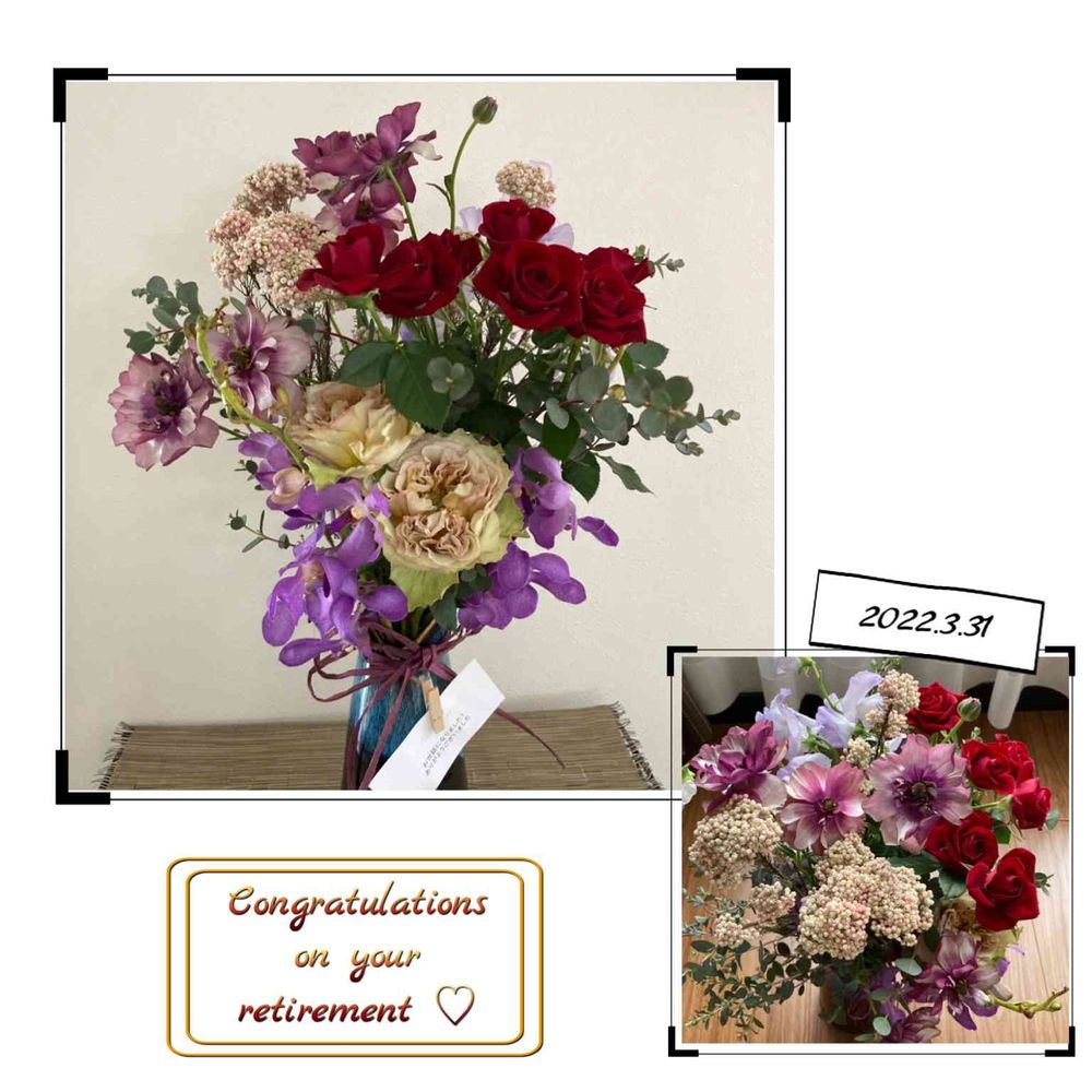 前の投稿の、家に届いたアレンジフラワーとは別に、職場からも花束を💐頂いて帰宅しました(旦那様が)