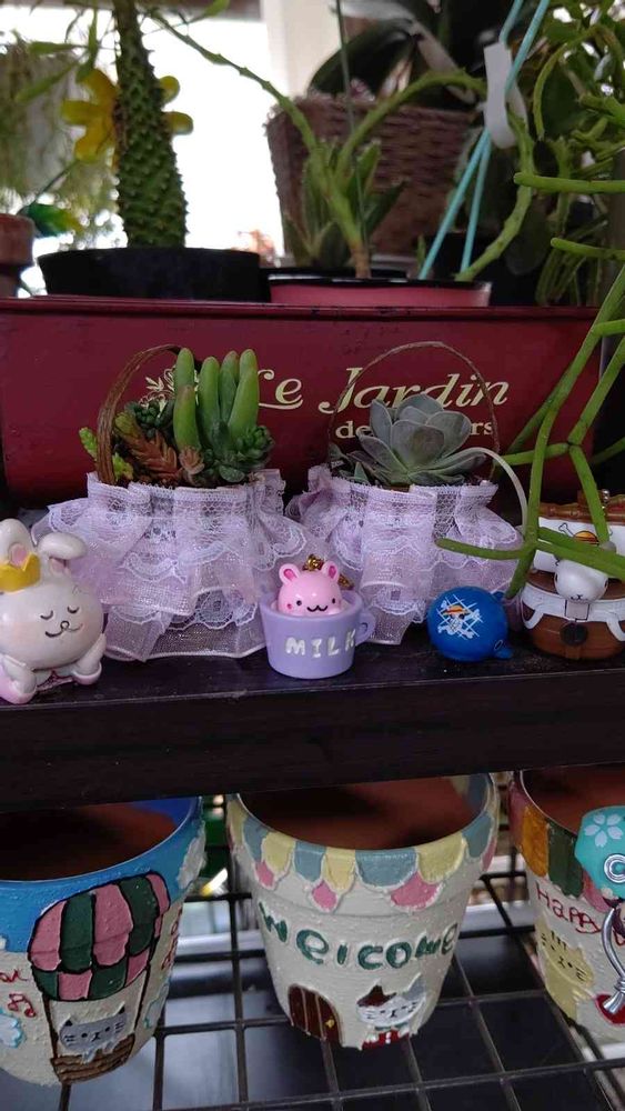 昨晩、ペットボトルのキャップで小さな鉢を作って寄せてみました。小さい子って、難しいですね➰❗️