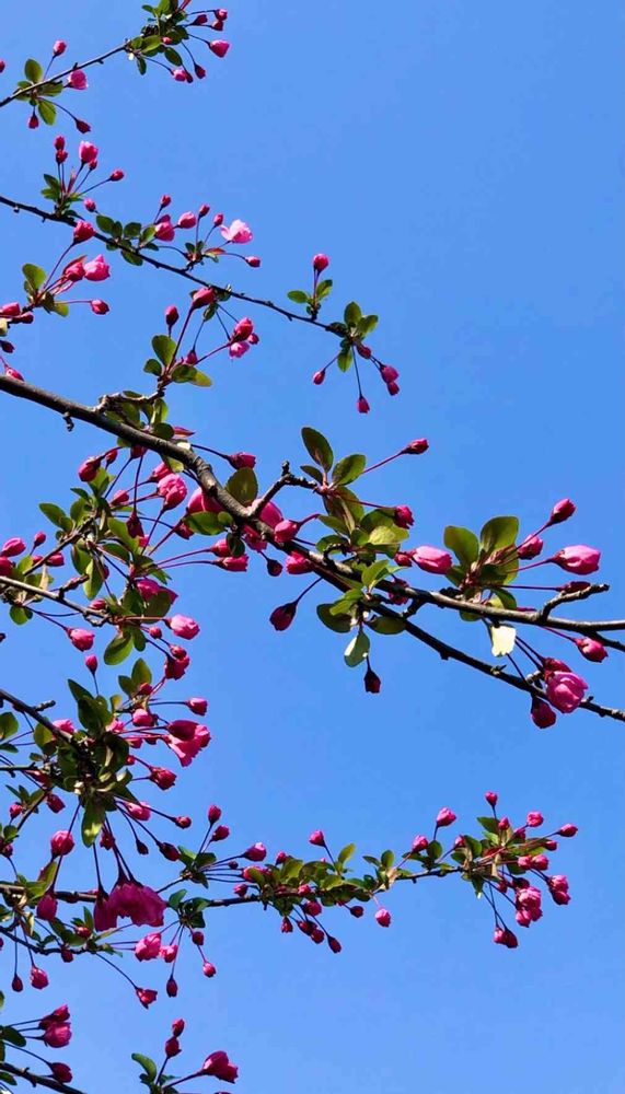 花海棠と青空、素敵なコントラストですね。さくら🌸に負けないくらいでキレイて好きなお花です♥️💕