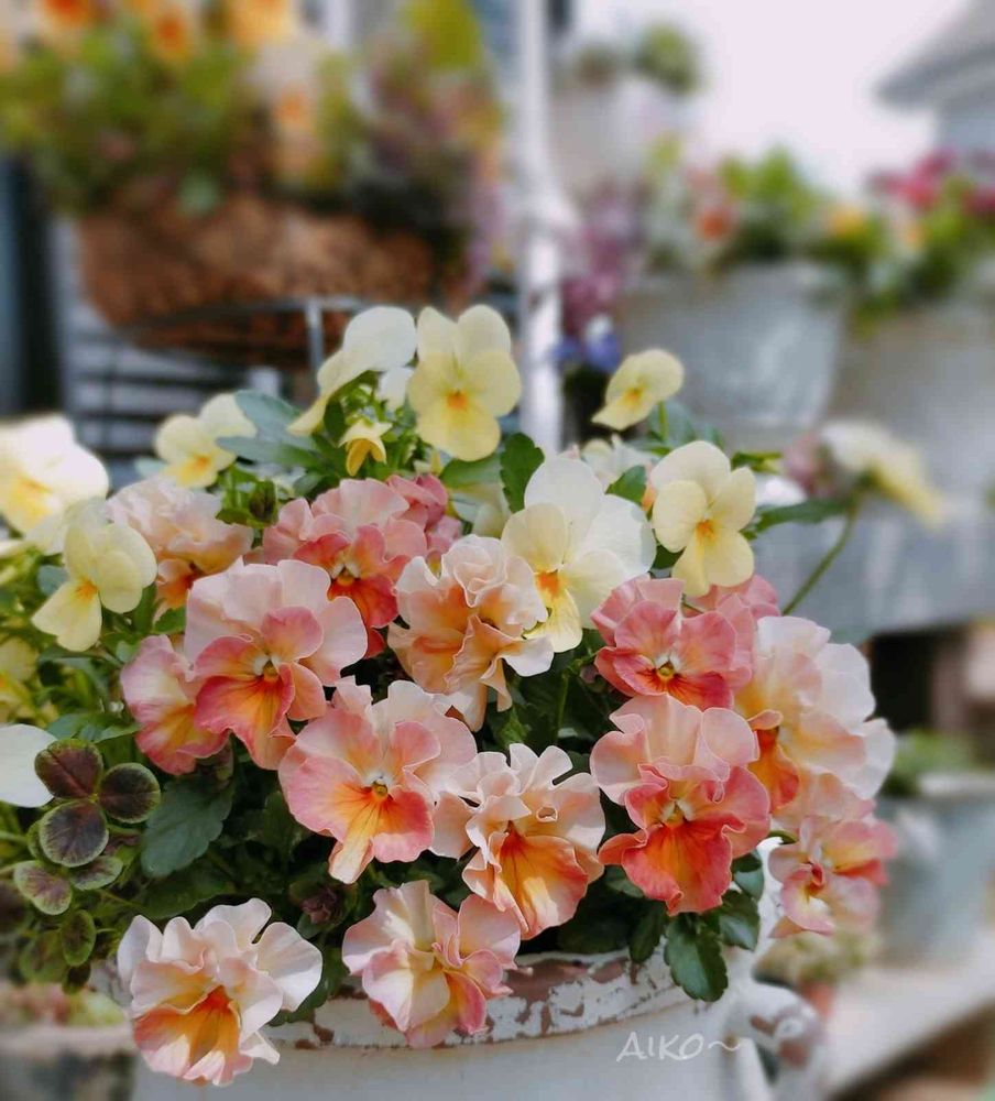 好きなアプリコット色から淡いクリーム色に〜可愛いビオラです💛🧡