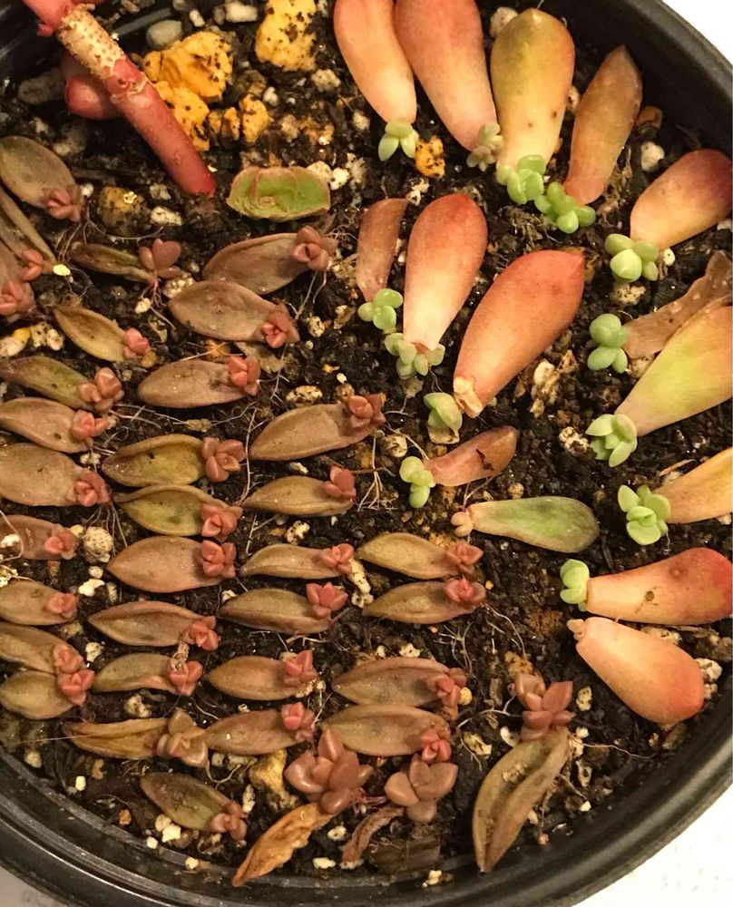 プランターの受け皿に薄くサラサラした土を敷いてポンポンと葉を並べました、日陰置きです、そんでたまーに霧吹きで水をあげてました。