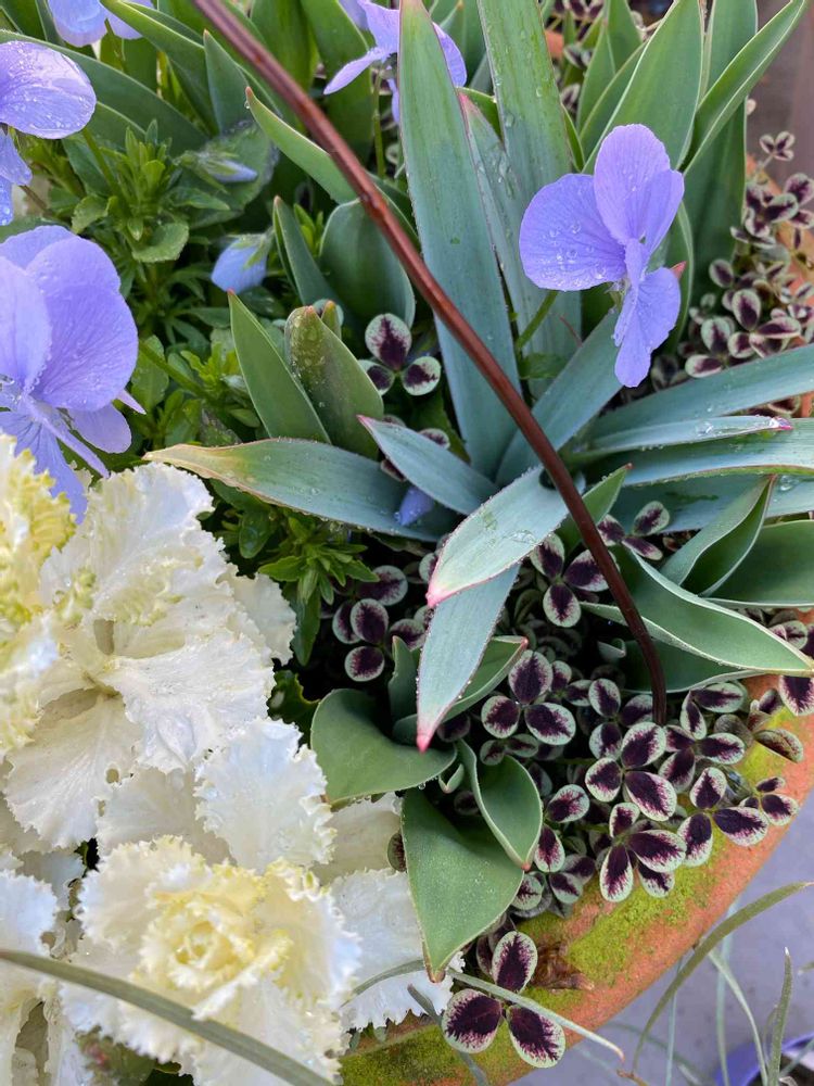 白〜クリーム色のハボタン・セッション、パリッとしたフリンジ葉が引き立てています