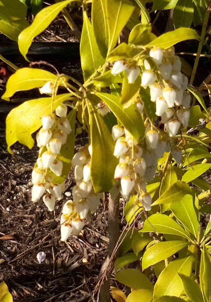 通りすがりの歩道脇の花壇に咲いているアセビ