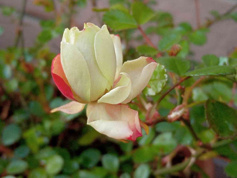 外側の花びらが赤いのは冬の寒さを耐えたからかなぁ~冬色が残ってます🌹
