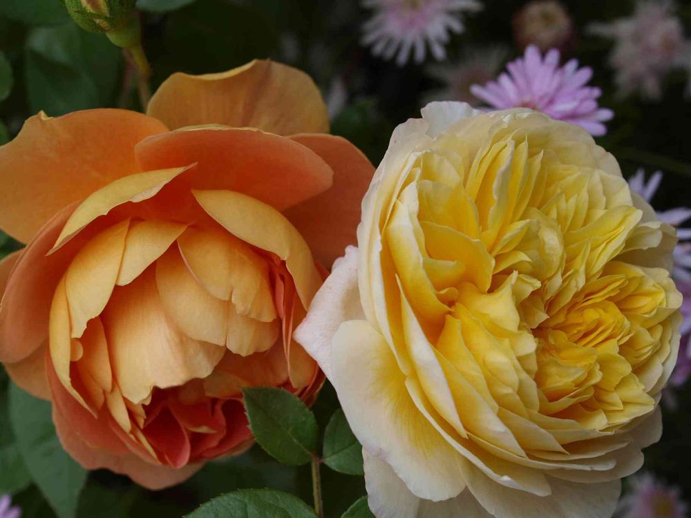左側のオレンジ色したバラさんがパットオースチンさん、右側の黄色いバラさんがシャルロットオースチンさんです。