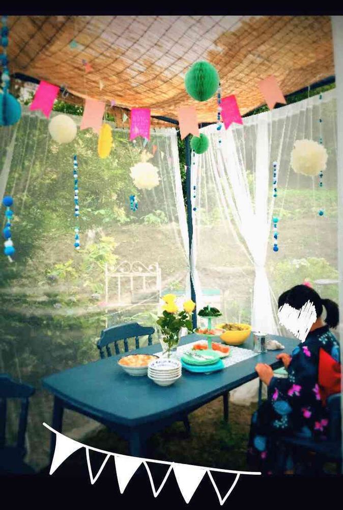 単管とIKEAのワンコインカーテンを使ってお庭リビングを