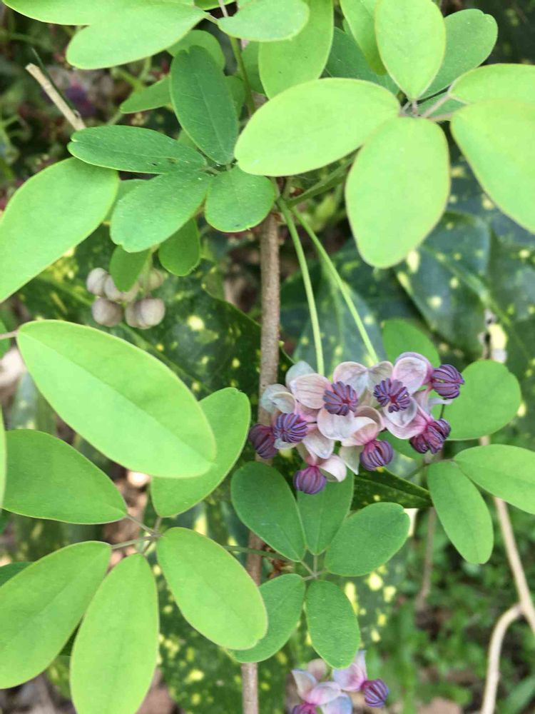 変わった紫陽花だな〜って思ったらアケビの花٩(๑❛ᴗ❛๑)۶? 今度気をつけて見てみよ〜っと🎶