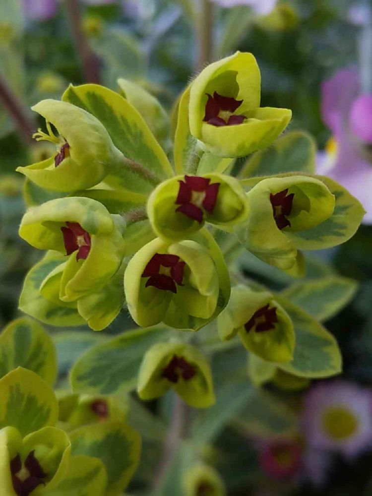 寄せ植えのリーフとして使っていたユーホルビア アスコットレインボーさんに、お花が咲きましたー🤗初めて見ました🥰