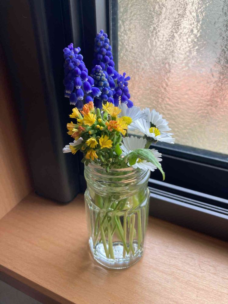 みどりのほしさんの窓辺,ムスカリ,イングリッシュデイジーの投稿画像