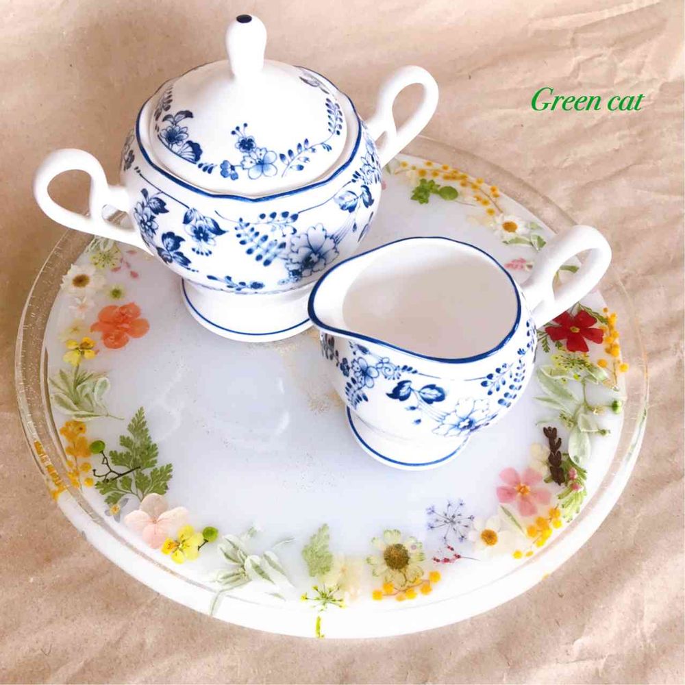 ドライフラワーや押花でトレイを作りました(^-^)゚・*:.。❁