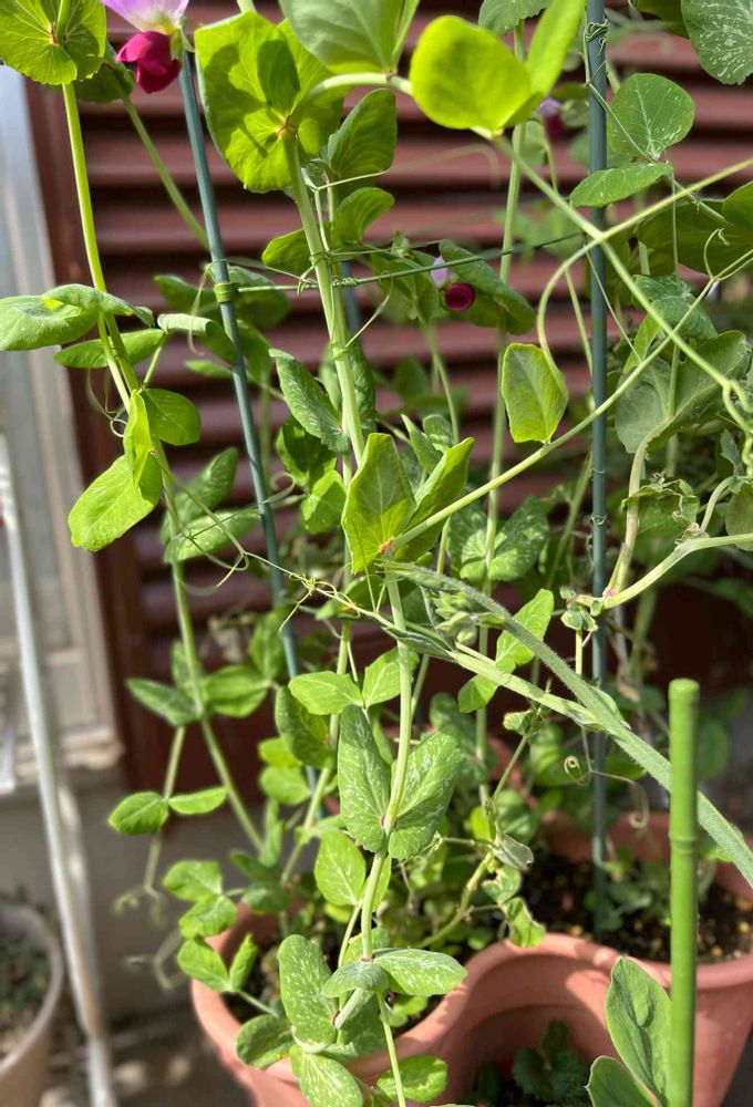 こちらは、手前のスイートピーと奥のツタンカーメンの豆がしっかり絡まってしまってました🌀