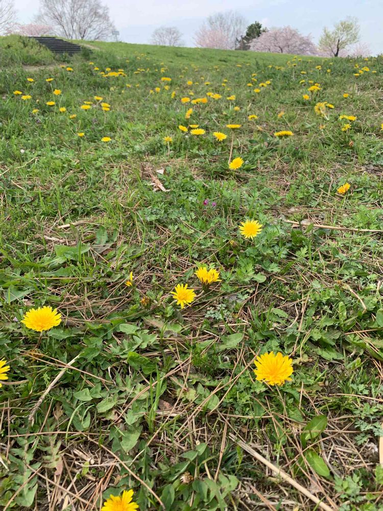 引っ越してきて初めての春公園でタンポポが一面に咲いていて嬉しかったのを今でも覚えいます😊