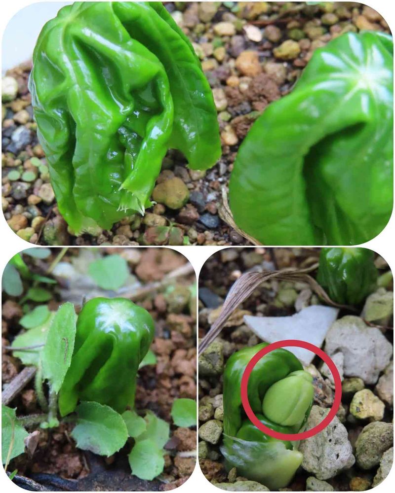 新芽はきのこの山のお菓子を連想させる可愛い葉ですし、大きくなると、手のひらサイズの多角形の形になり、可愛い植物ですよ🎵