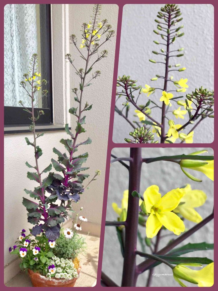初めて育てた葉牡丹がこんな姿になるなんて😅それも花を咲かせる事も想像してませんでした('-`)。oO
