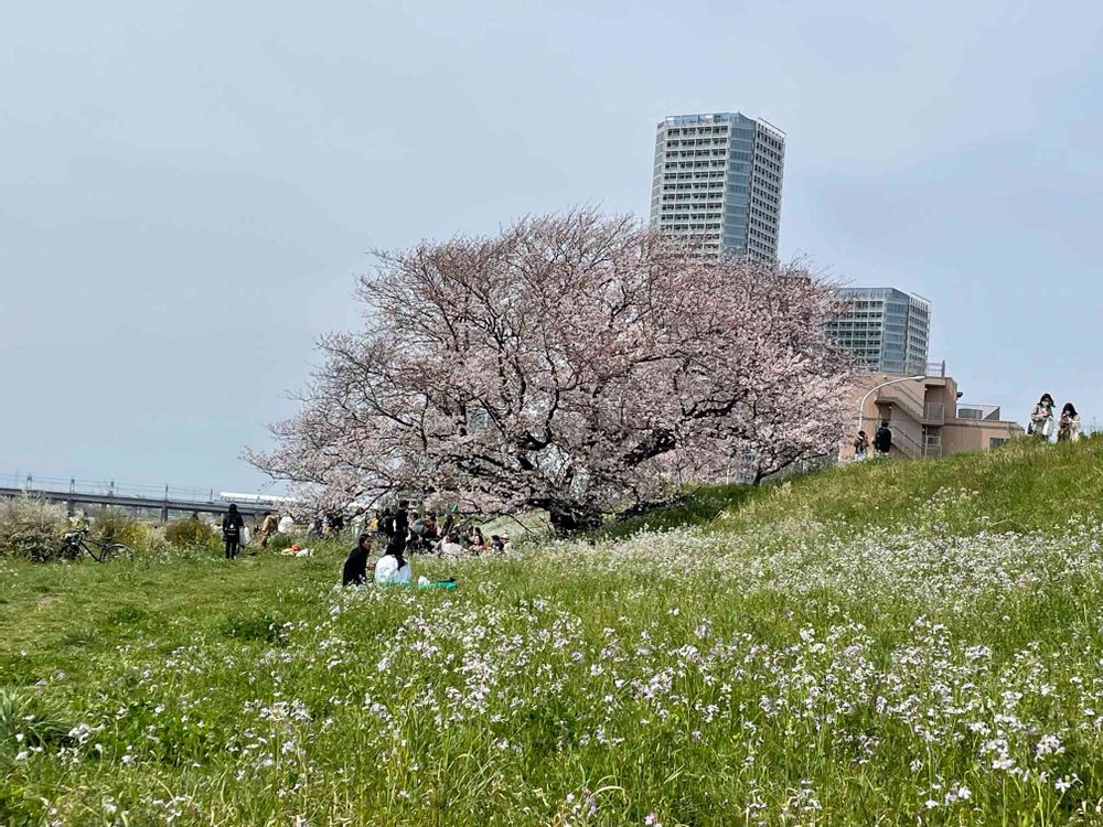 二子玉から第三京浜に向かって10分位のトコにある多摩川河川敷の桜🌸、見に行ってきましたー。毎年逢いに行ってるお気に入り。満開なので結構人大杉。直下はディスタンスが保たれてれないんで全体見える位置に着席。娘がお酒飲めるようになってからは毎年付き合ってくれてます。満開見越して休みを入れてるようなので嫌々ではないと思われ。一応気を使って小洒落たランチにした。