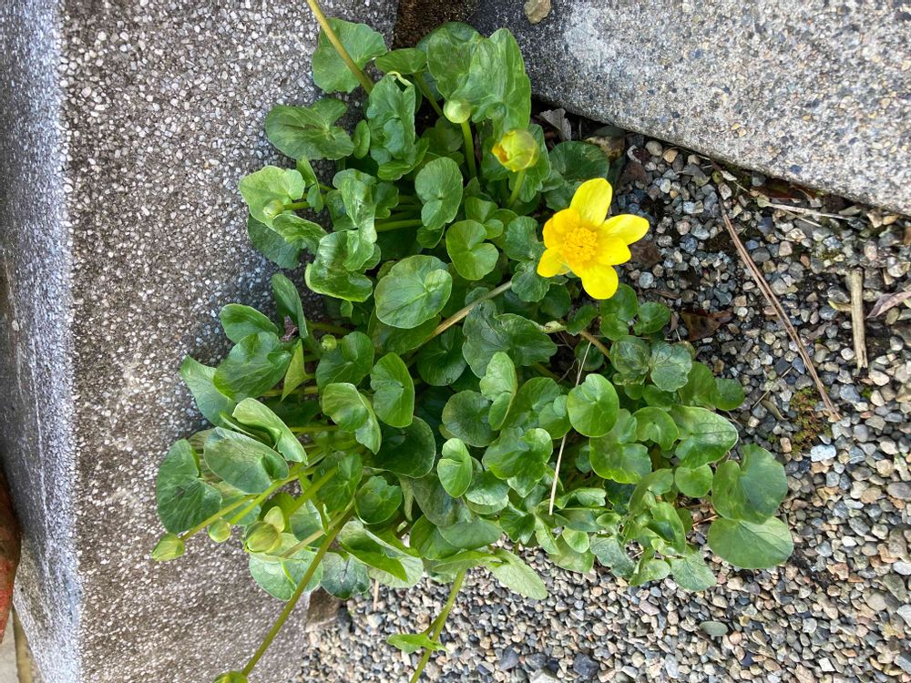 玄関の隅っこから生えてきました。何ていうお花🌼でしょうか?
