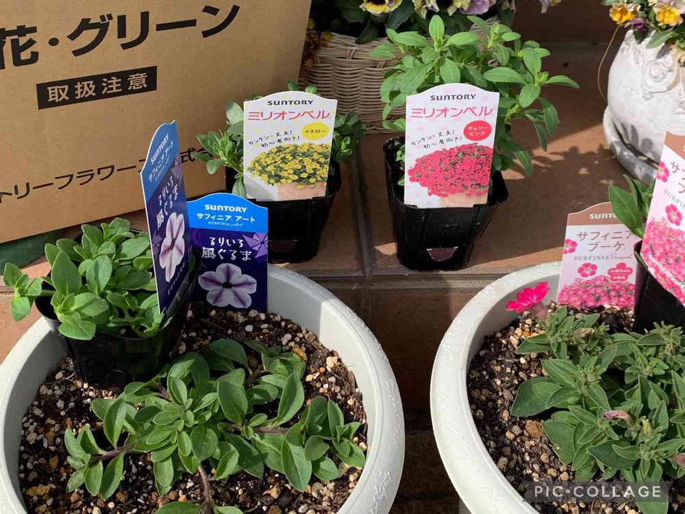 サフィニアアート 小梅ちゃんと、るり色風車、すでに植えてありますが、いくつあっても嬉しいです👏👏👏👏👏