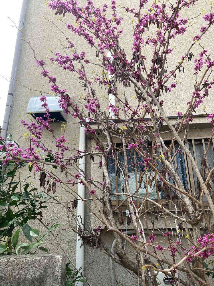 ずっと大通りで見た花蘇芳ですが、今日は人家の庭
