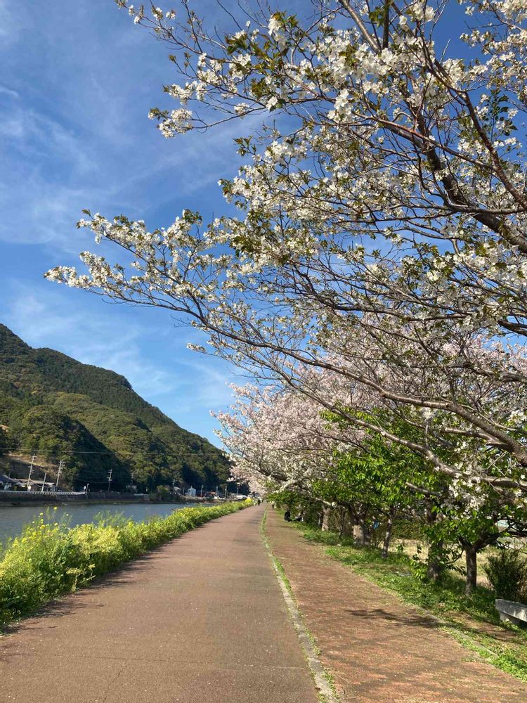 遊歩道だから車が来る心配もないし、景色を見ながら川面には桜の花びらが舞い散る様子が浮かびます🌸🌸💞