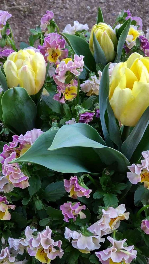 ビオラもモリモリでレモンイエローのチューリップ🌷