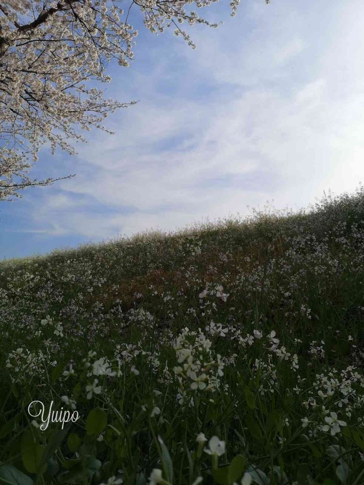 とても雄大な桜並木とハマダイコン群生と夕陽、3部に渡りドラマの様に自分が大自然の中包まれて歩き景色を楽しんだ気分になりました🌸🏞🚶👣