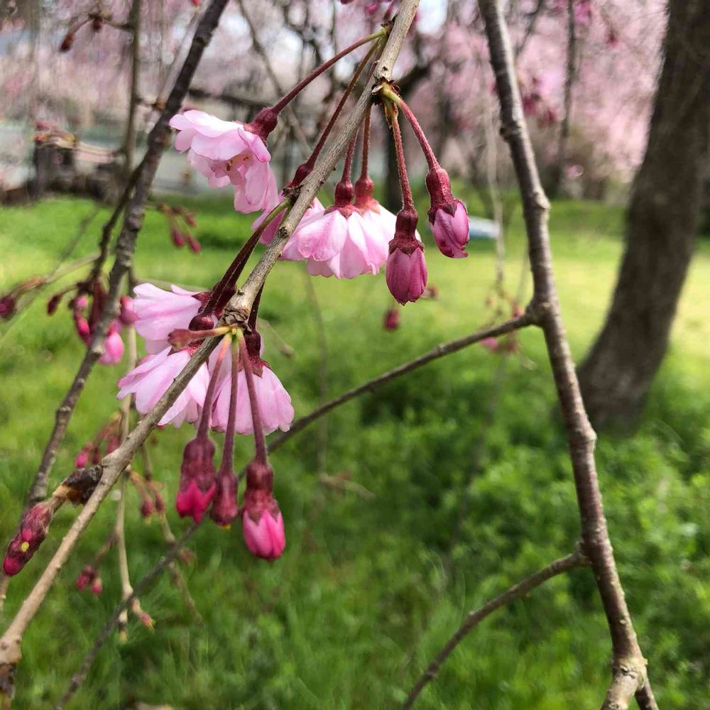 枝垂れ桜のつぼみ🌸 ちょっと海棠にも似た風情
