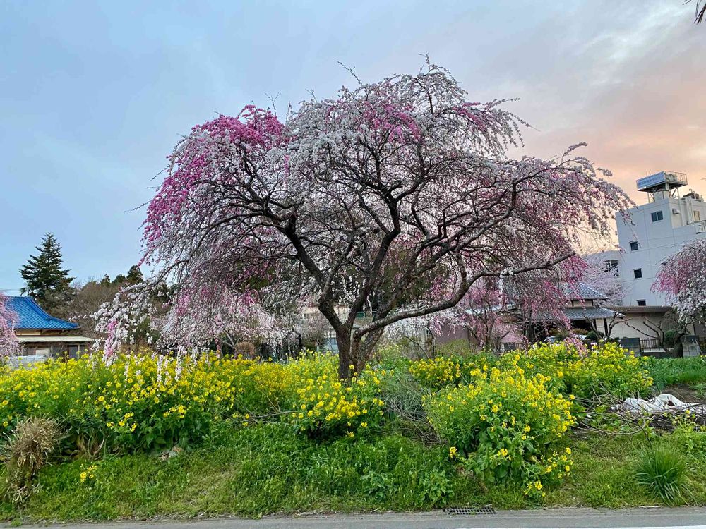 ご近所の源平枝垂れ桃が素晴らしかったです💕夕方だったので、少し色味が寂しいですけど💦