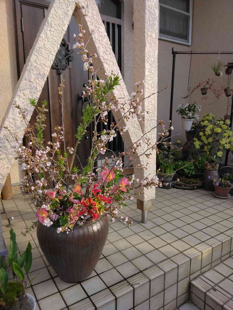 玄関で桜見物(*⌒▽⌒*)🤗🌸🌸🌸