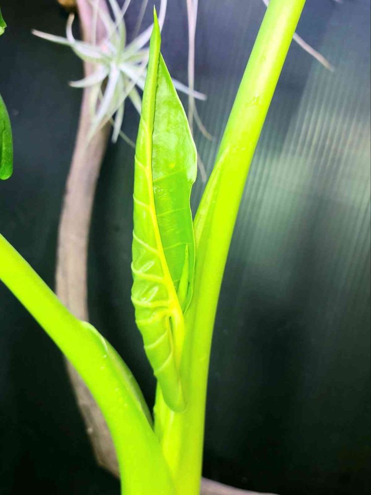 先日UPしたクワズイモの新芽が出てきたのですが新芽の中にもうひとつドリルが…