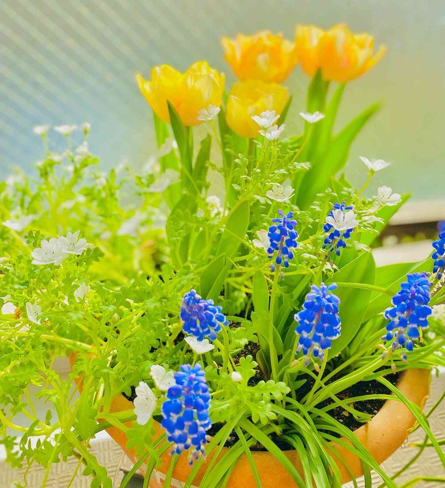 チューリップ(フォクシーホォックストロット)を植えた鉢、たくさんお花が咲いてきました。