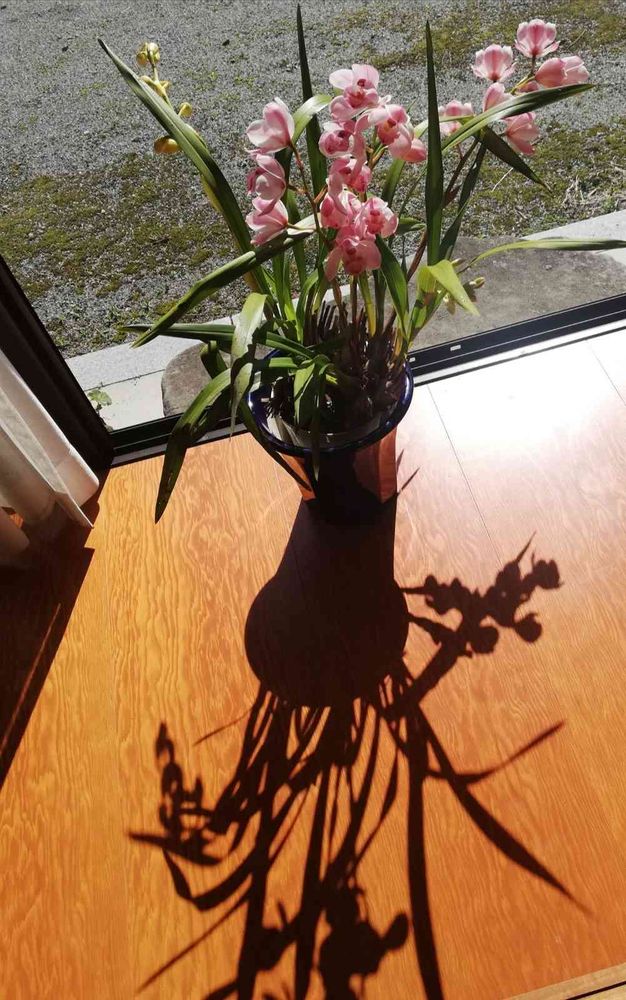 陽あたりよい縁側のシンピジウムさんが咲きました♡