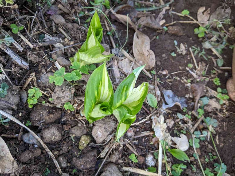 ギボウシ。芽が出てきてくれました。直射日光当たるところだから、枯れたかと心配していましたょ。一安心🤭👍