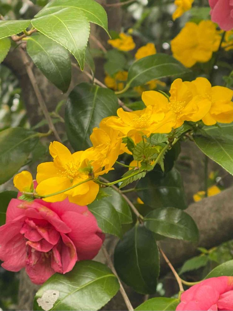 ピンクのサンダルさんのお出かけ先,ツバキ,ヤマブキの投稿画像
