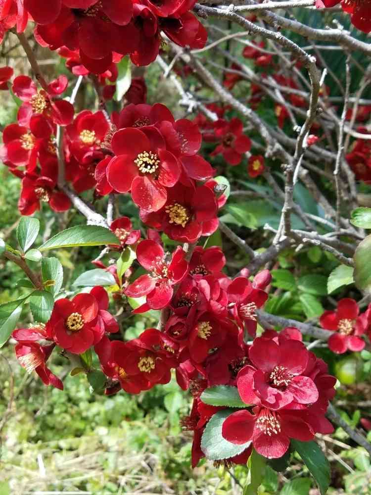 小さな庭,木瓜(ぼけ),赤い花の投稿画像