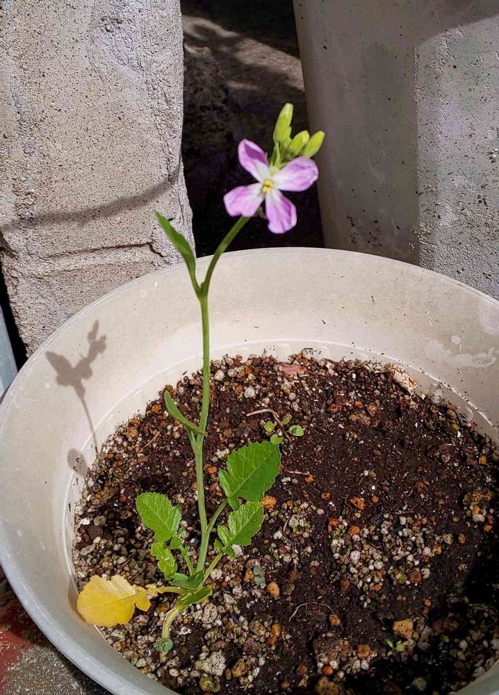 隣のおじさんがガレージの屋根のところでプランターでダイコンを作ってました。🤭