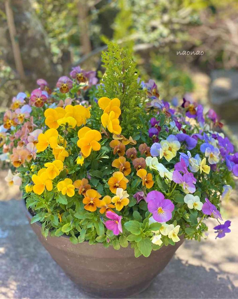 色んな色のビオラを寄せてるので、反対から見ると、また違った華やかさがありますね💛💗