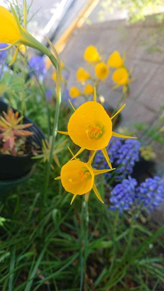 2年くらい前から突然やってきたペチコート水仙✨ムスカリのムラサキと良い感じ🌸
