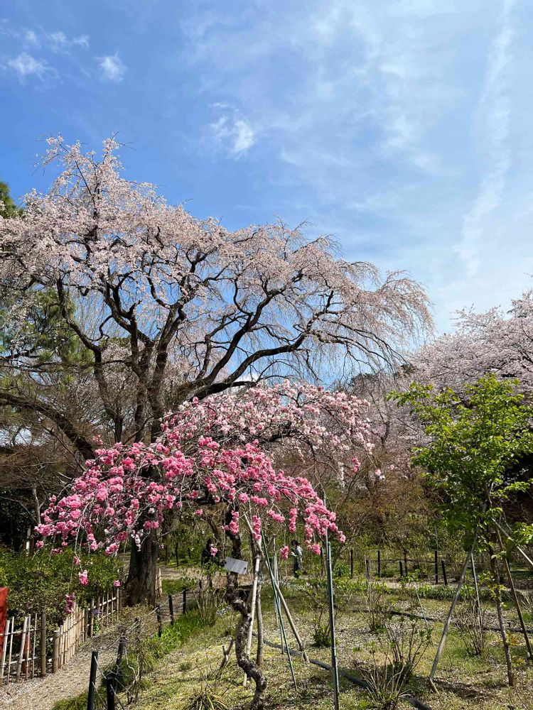 枝垂れ桜と源平枝垂れ桃
