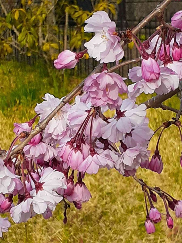 散歩道の🐕枝垂れ桜も開いてきました🌸
